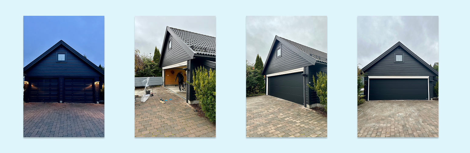 I år 2000 ble både hus og garasje bygd. Garasjeportene hadde åpnet og lukket seg i 23 år, så nå var tiden inne for å montere nye.